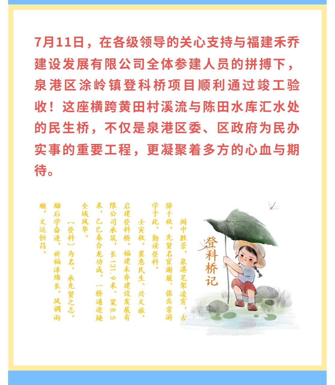 登科橋順利竣工!禾喬建設匠心筑就民生橋